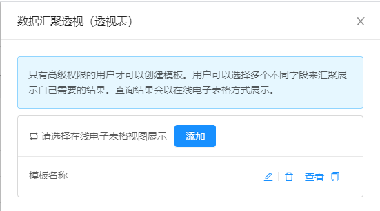 表单作者可以按照自己的需求创建不同的透视模板,作者可以选择多个不同字段来汇聚展示自己需要的透视结果。查询结果会以在线电子表格方式展示。